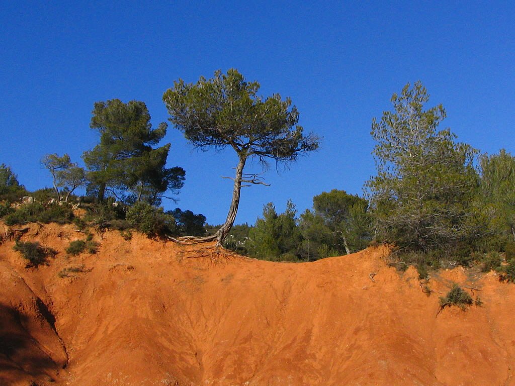 Fond Ecran Provence : Fond d'écran : promenade au milieu des terres rouges, riches en bauxite, dans le massif de la Sainte Victoire. Paysage et photos de Provence. - Un format 1024/768 - Pour windows 98, ME ou XP